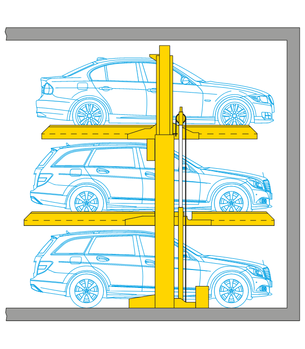 The Triple Shelf parks 3 vehicles one above the other, taking up the space of only one individual car park. 3 vehicles can park in the space of one